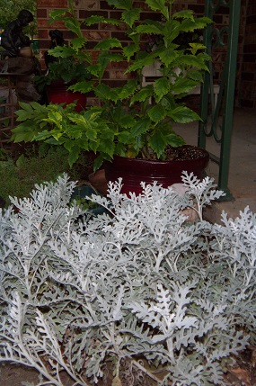 The Dusty Miller is still exuberant. I’ve always liked that plant maybe because it is named after a person who was important once upon a time; the miller who ground wheat or corn into meal.002