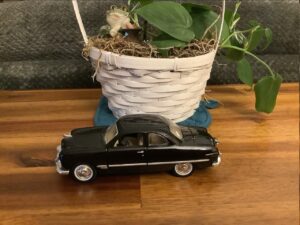 My younger brother sent me a surprise package a few days ago. In it was a model car, a 1949 Ford. He had been to an estate sale of a man who collected model cars and found this one. Our dad once owned a 1949 black Ford so this little car brought back a lot of memories.