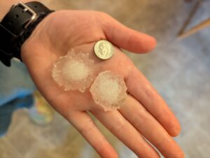 This August morning is still and golden–not a breeze stirring and so far, no smoke from Canada or dust from the Sahara. Thumps and bumps come from over my head. Remember the hailstorm that tore through more than a month ago? This new roof is the result of that.