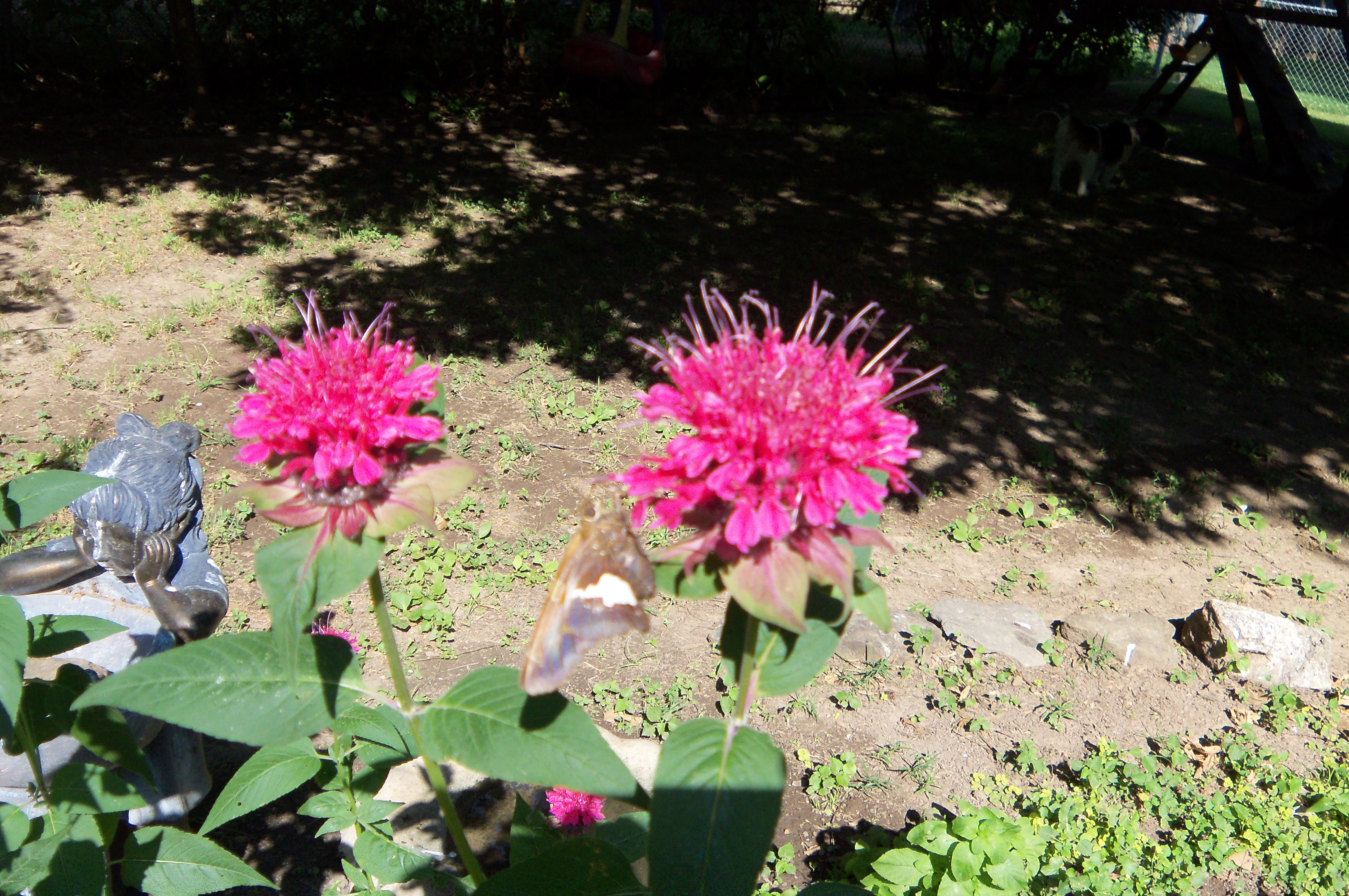 Each year, it comes up and grows and spreads a little more. Bees and butterflies love it. I tried to get some picture of the little insects on the blooms but the butterfly sort of blends in and the bee’s posterior is all that shows up.